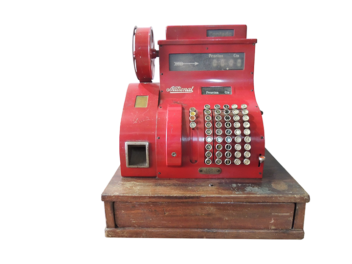 Caja registradora roja con manivela National