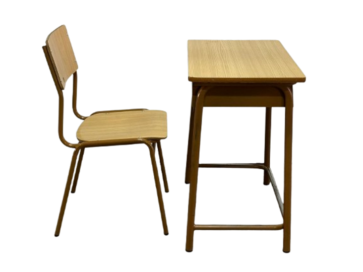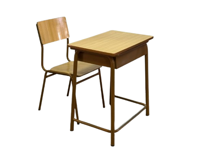 Sillas de colegio tubo marrón y formica marrón (Conjunto 30 sillas COL100 con 20 mesas pupitre COL102)