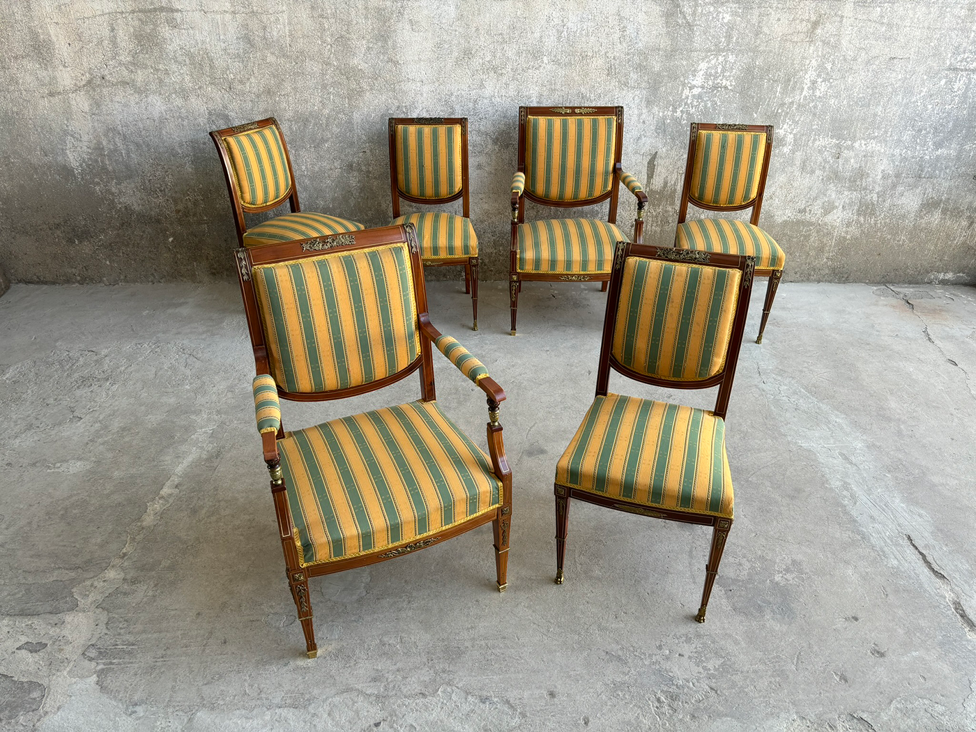 Sillón imperio caoba con aplicaciones de metal (a juego con 4 sillas SIL113)