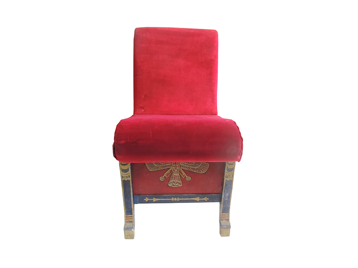 Sillón egipcio laterales pintados tapizado rojo (uno más pequeño 63x80x145)
