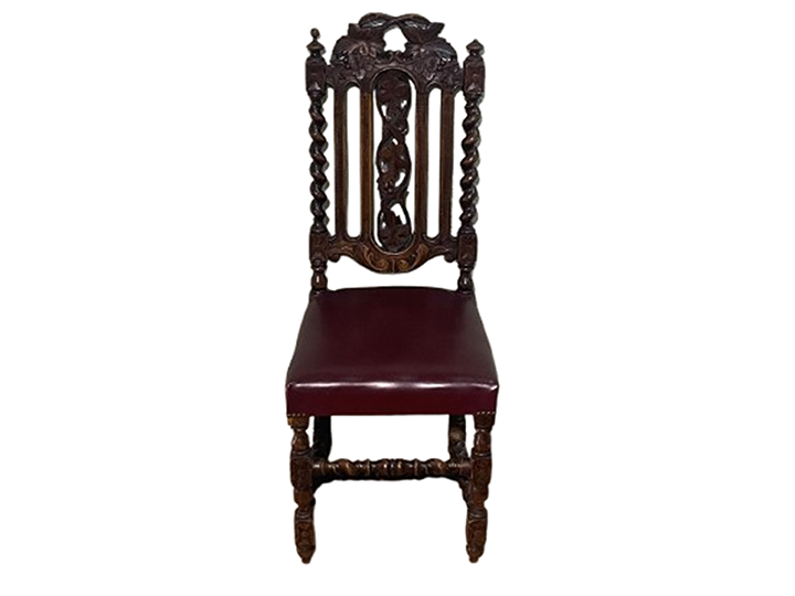 Silla alemana tallada columnas salomónicas tapizadas skay corinto (Conjunto comedor: mesa M522, 2 SI-227, 4 SIL-217 y 2 SIL78)