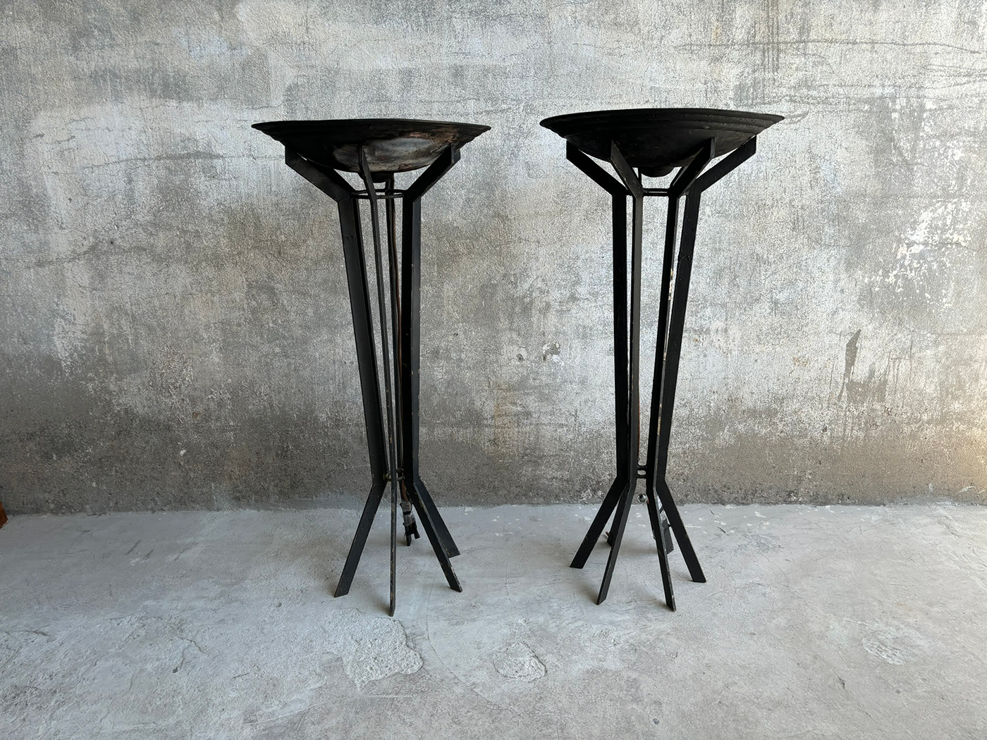 Braseros medievales altos hierro redondo con pie (2 unid)