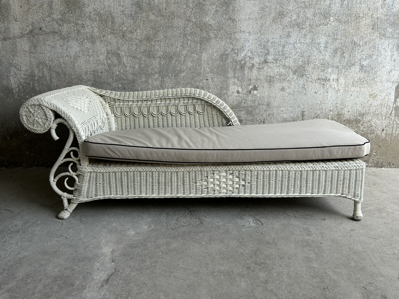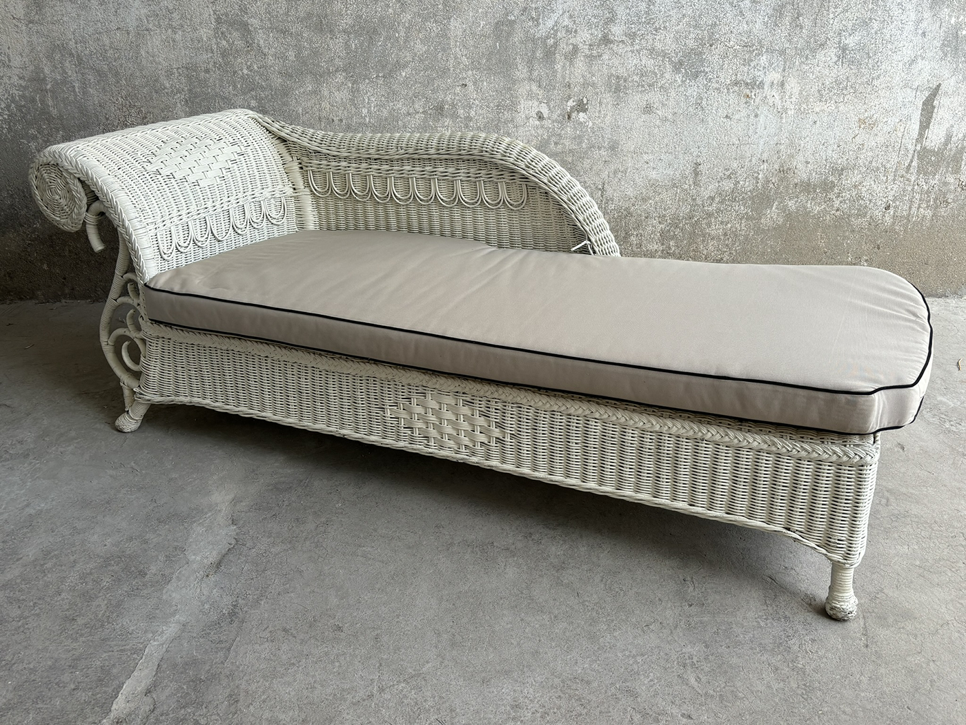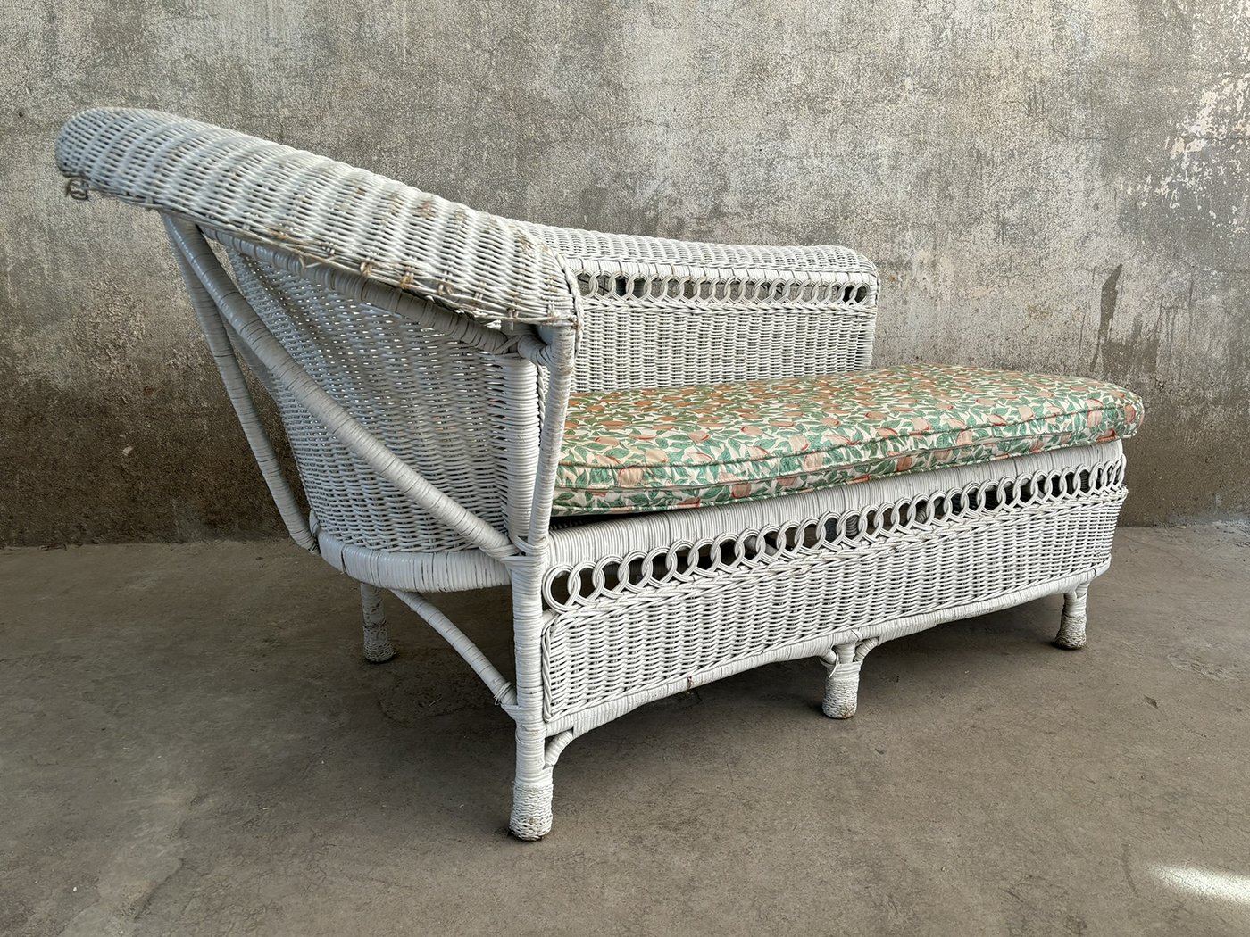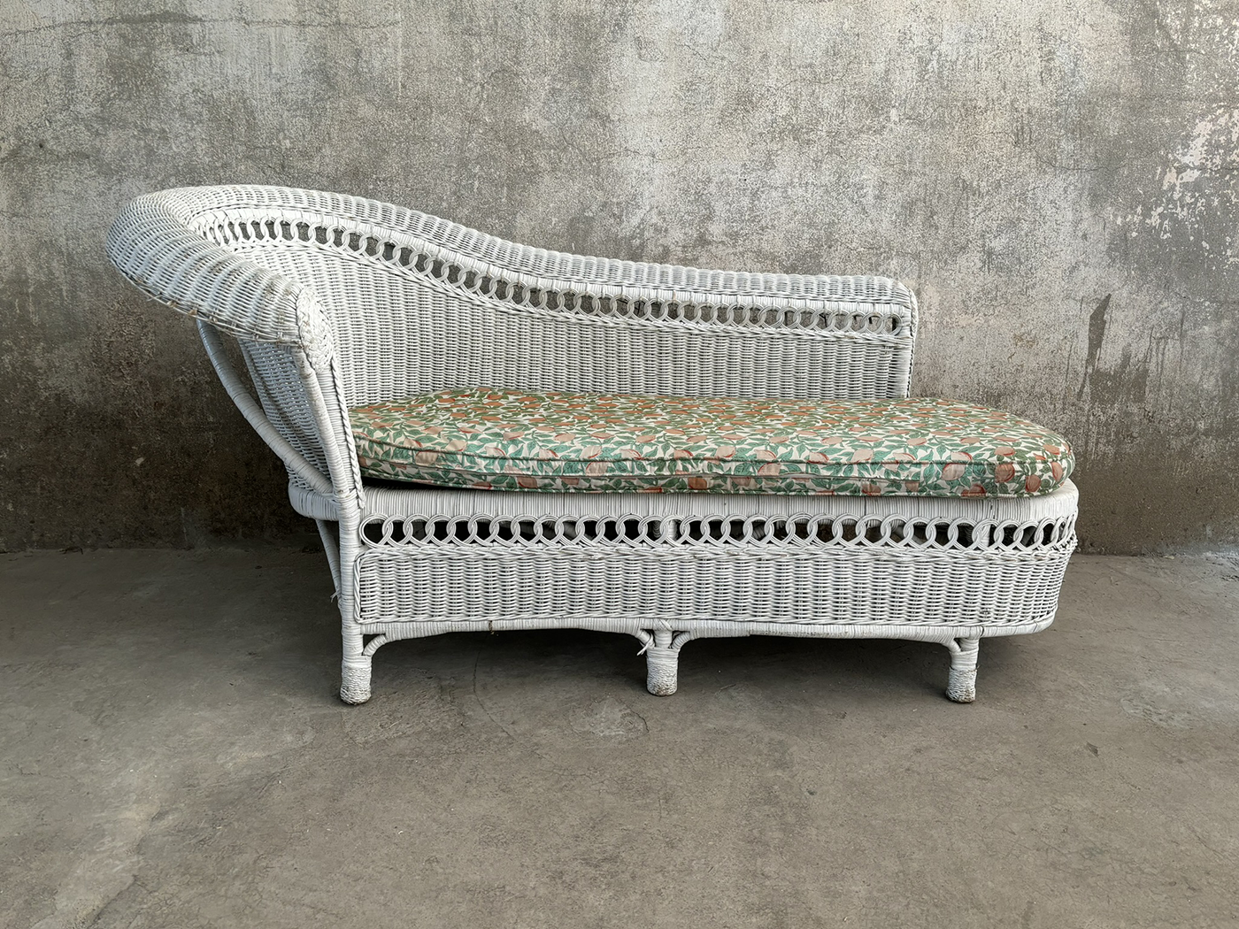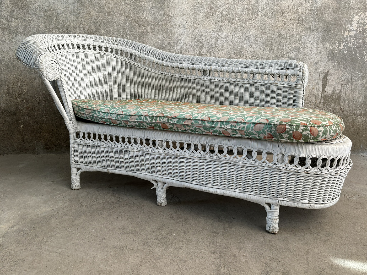 Chaiselonge mimbre pintada blanco respaldo bajo
