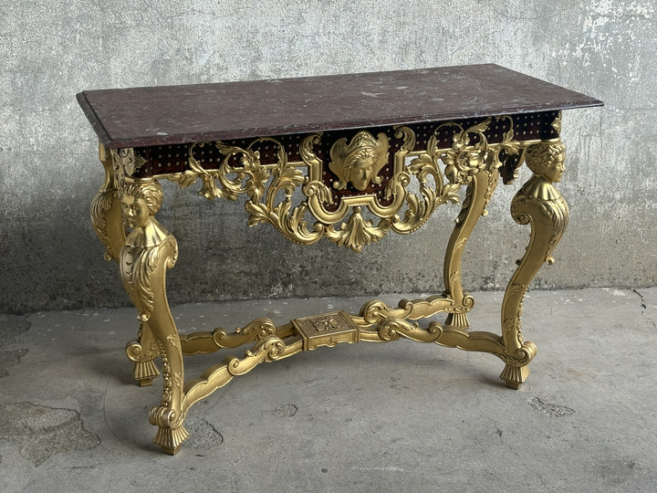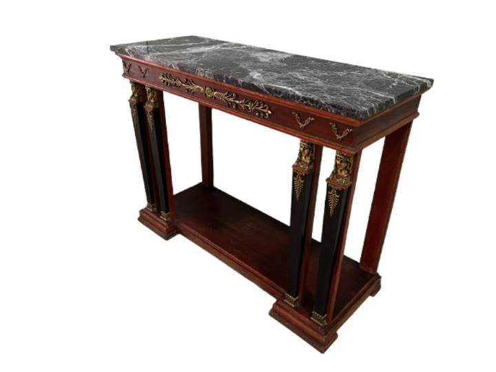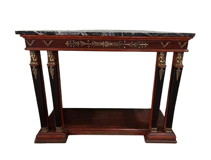 Consola imperio tallada dorada cabezas con tapa mármol (puede ir sin el mármol)
