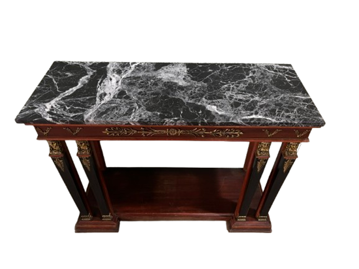 Consola imperio nogal 4 patas con tapa mármol blanco