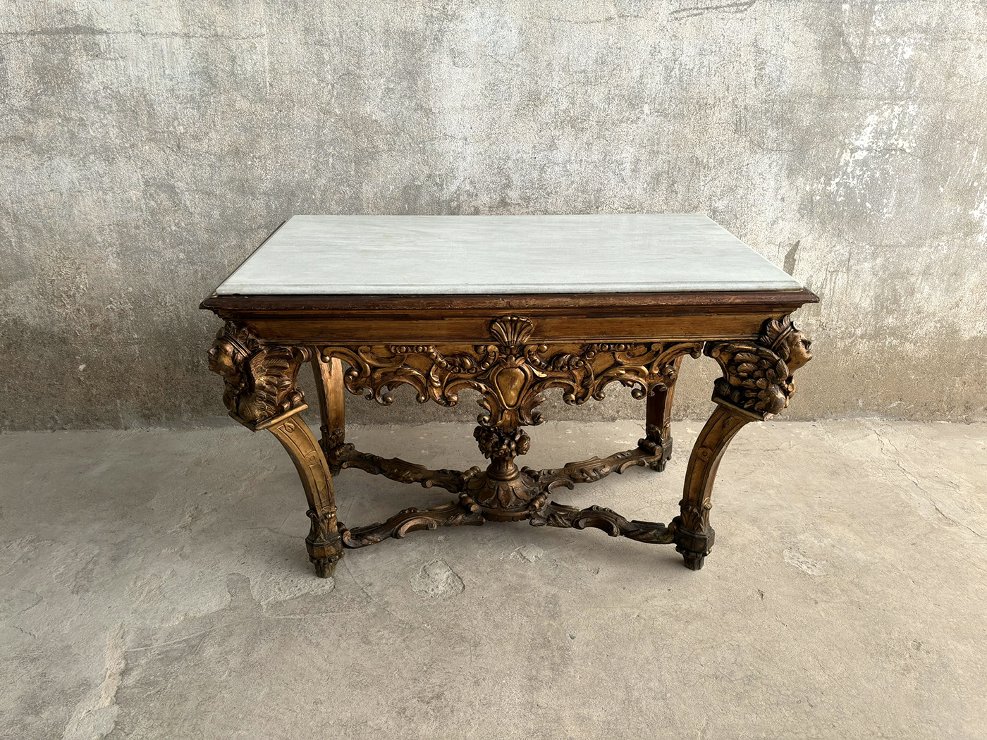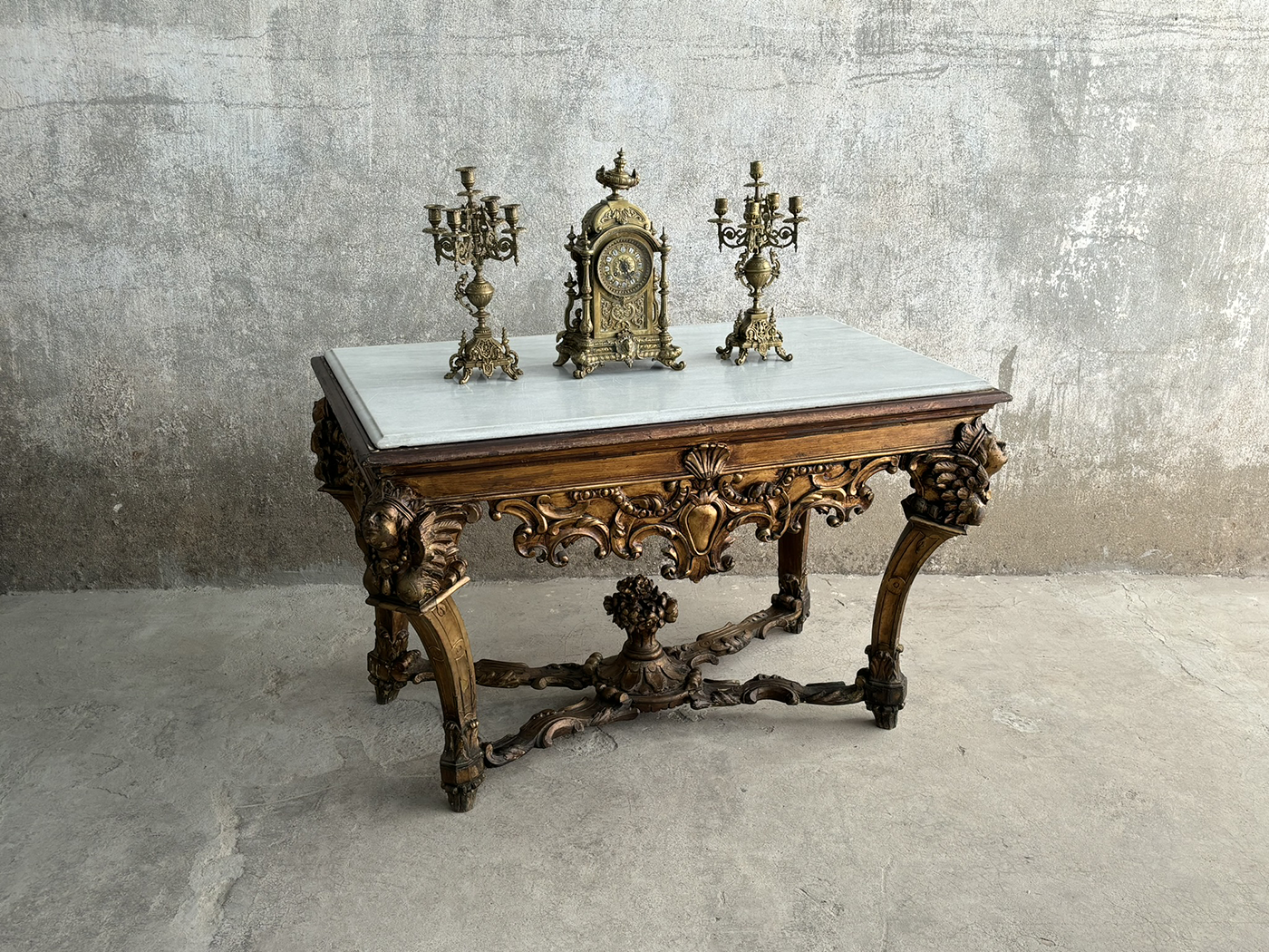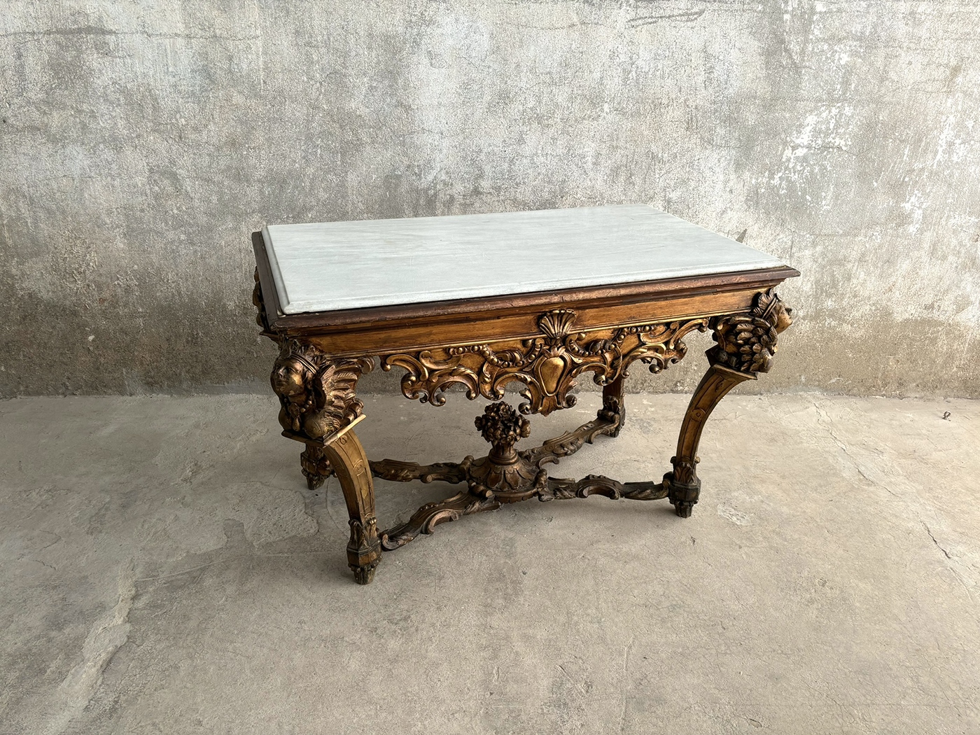 Mesa estilo francés tallada cabezas tapa mármol
