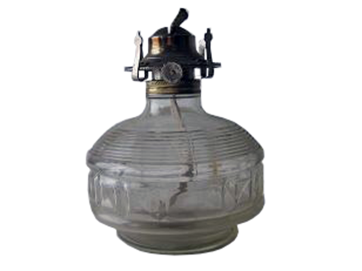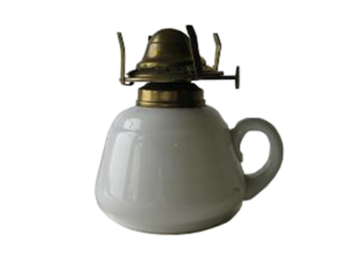 Quinqué pequeño cristal blanco con asa