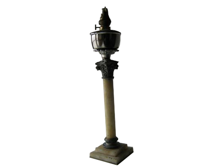 Quinqué columna alabastro depósito cristal