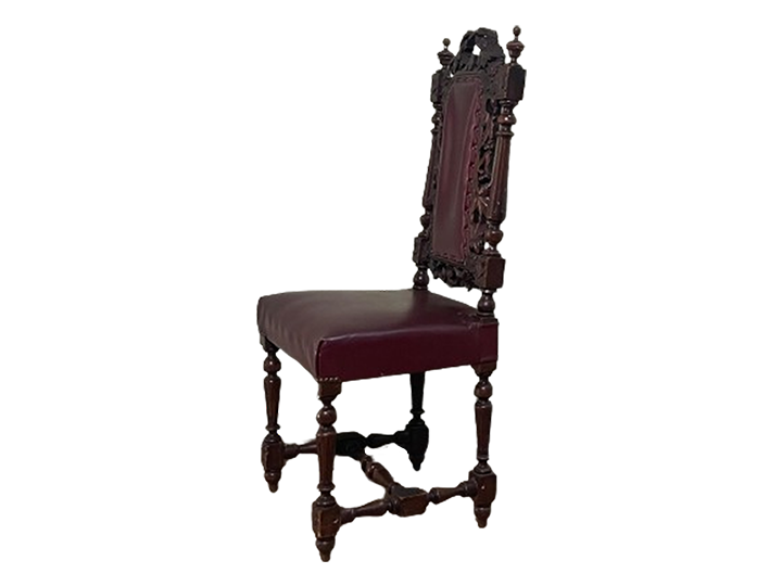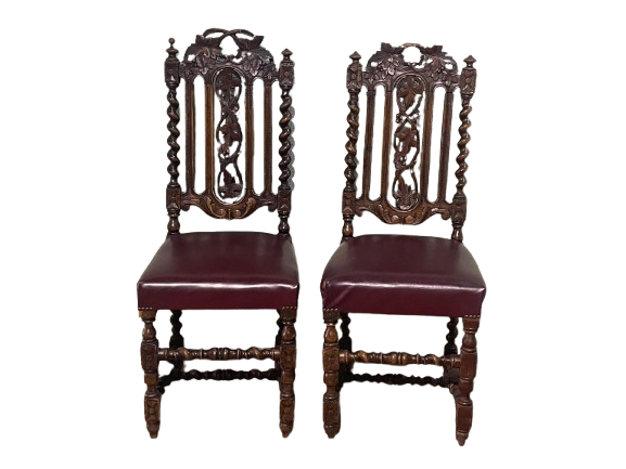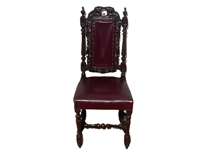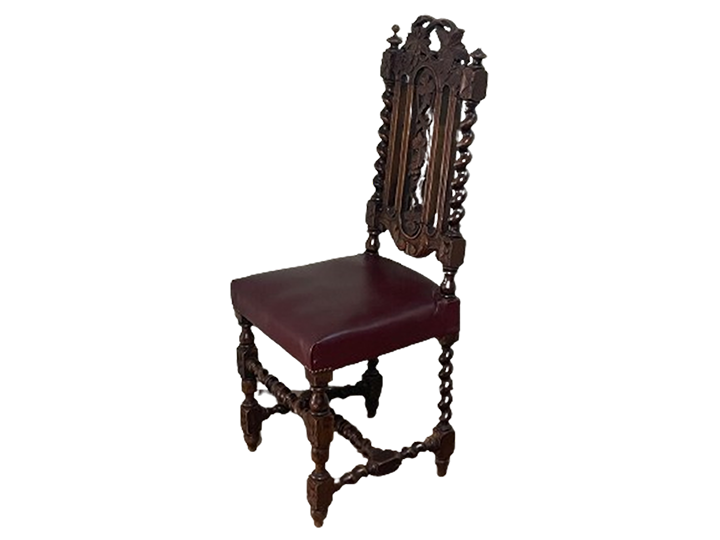 Silla alemana tallada columnas salomónicas tapizadas skay corinto (Conjunto comedor: mesa M522, 2 SI-227, 4 SIL-217 y 2 SIL78)