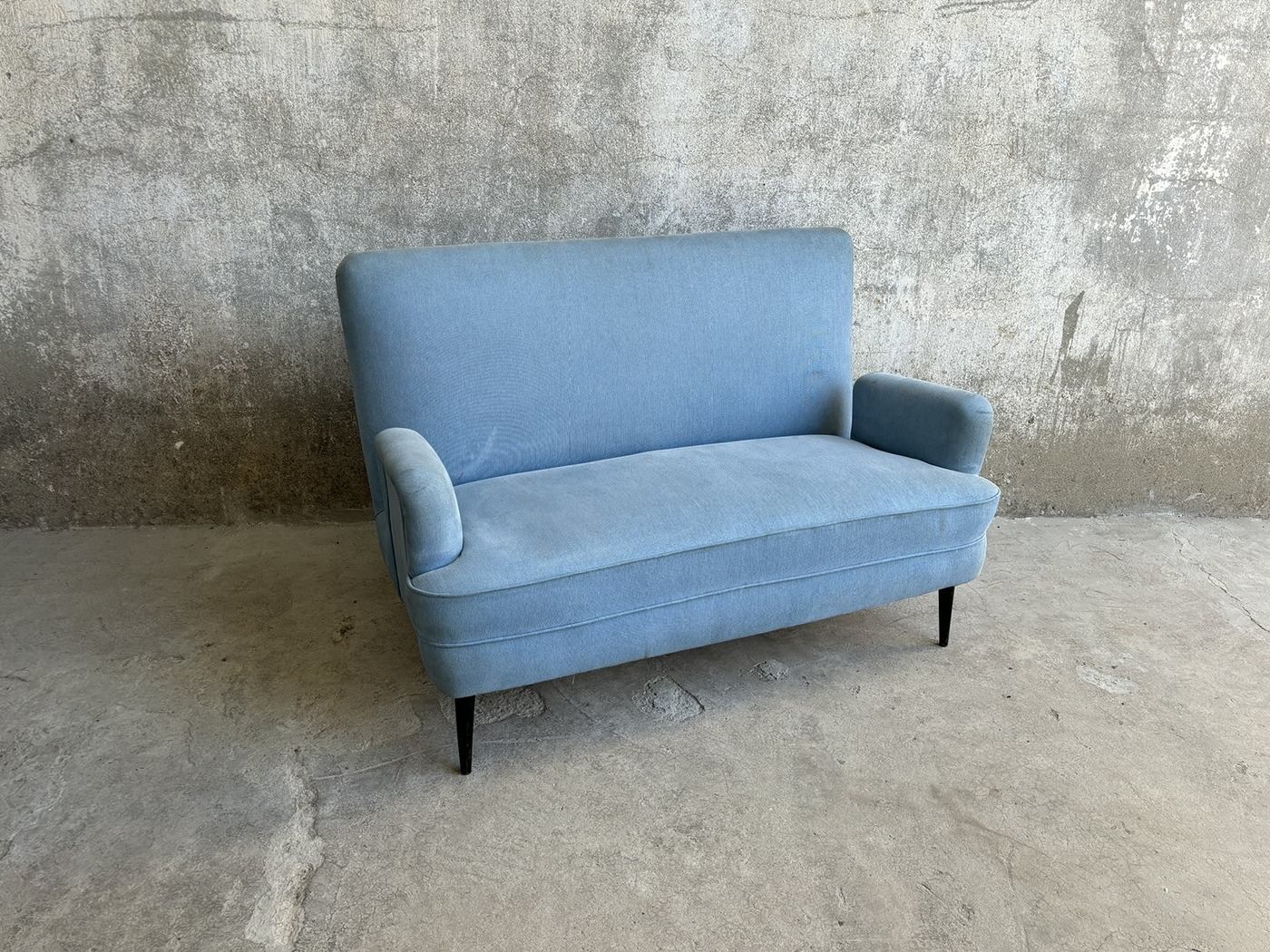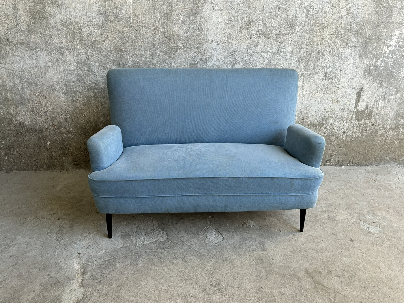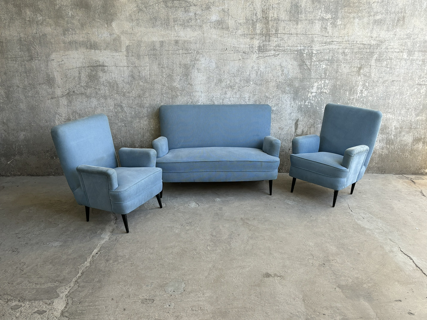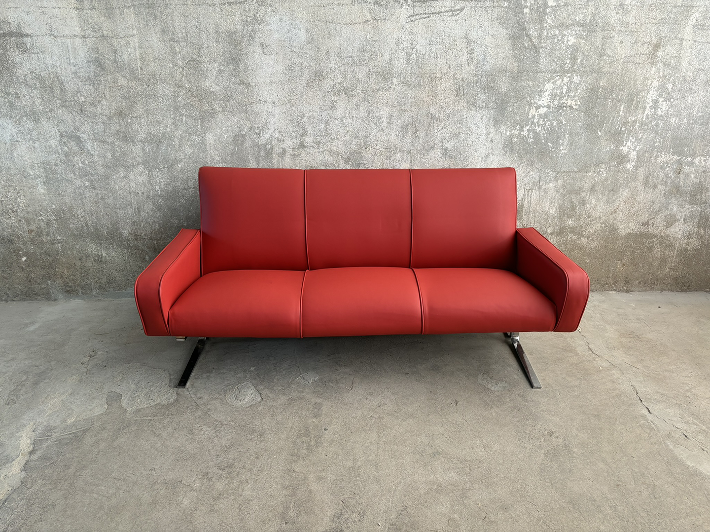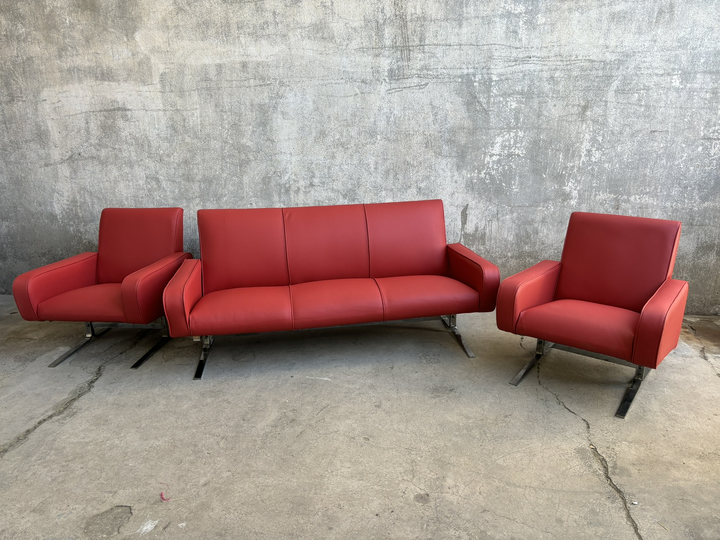 Sofá italiano tapizado skay rojo pie niquelado (Conjunto tresillo completo: sofá S69 y 2 sillones SI151)