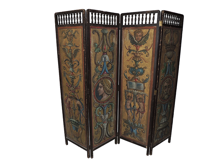Biombo Luis XV 3 hojas nogal hojas pintadas