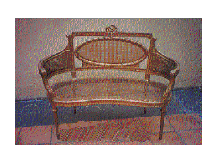 Sofá Luis XVI rejilla dorada respaldo medallón
