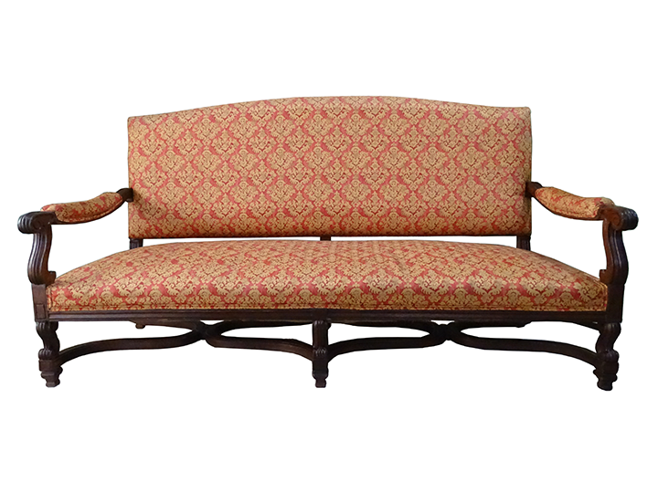 Sofá Luis XIV dorado tapizado rojo (conjunto sillería: sofá S9, 3 sillones y 4 sillas SIL9)
