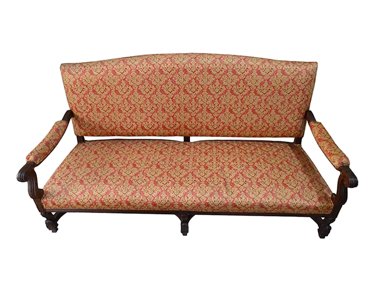 Sofá Luis XV nogal tapizado tela flores (Conjunto tresillo completo: 1 sofá S11 y 2 sillones SI-11)